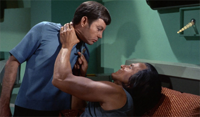 As a side note, it’s interesting to consider how Fry’s observations apply to Space Seed. With an episode revolving around that Apollonian urge for war and violence above reason and culture, it’s no surprise that Spock finds himself in conflict with both McCoy and Kirk here. In the opening sequence, Kirk seems to take particular relish in proving his science officer wrong.
