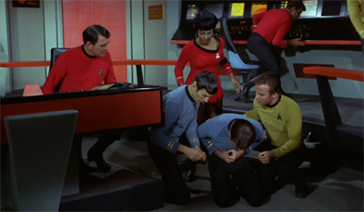 This is, to be fair, the biggest problem with the story and the script, and the one piece that really holds Ellison’s vision back from the show he was writing. The inability of the special effects to match Ellison’s vision can be forgiven, the drugs subplot isn’t too inconsistent with what we’ve seen of life on the Enterprise, but Kirk is the one character who absolutely and positively cannot be used in the way that Ellison wants to use him.