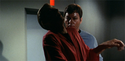 The rather wonderful David R. George III makes a very astute character observation in his tie-in novel, Provenance of Shadows. Tying McCoy’s drug-induced paranoia to guilt issues revealed in the much later Star Trek V: The Final Frontier, George retroactively suggests that McCoy’s worries about the “assassins! murderers! murderers! assassins!” are just a projection of his own guilt about helping his father commit suicide all those years ago. In effect, he is the assassin he fears so much.
