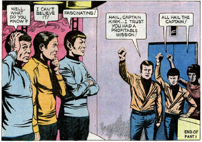 The plot is paced in such a way that new and radical things happen with each turn of the page, even if they aren’t or foreshadowed or don’t make sense. Consider Spock’s rather blunt way of explaining why the Enterprise is now a weirdly fascist pirate ship, like the Condor from Ellison’s original draft of The City on the Edge of Forever, complete with salutes from Mirror, Mirror.