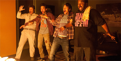 There’s a moment about half-way through This is the End when our bunch of celebrities are starting go stir-crazy, as they brave the apocalypse inside James Franco’s surprisingly fortified house. In the strange combination of idle boredom and growing madness, the group decide to improvise a trailer for the non-existent sequel to Pineapple Express. It is complete nonsense, but there’s a strange energy and a warm sense of humour to their “sweded” version of a Hollywood comedy, complete with remote-control car chases and homemade props.