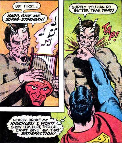 Given that this retool feels like a conscious attempt to get away from the Silver Age, it feels weird to see so many weird Silver Age-y devices. Stories featuring demonic harps or Superman’s almost trip to hell feel like they are the antithesis of O’Neil’s attempts to ground and reinvent Superman as a character. At the same time, the goons with guns are so generic that none of them have a real identity.