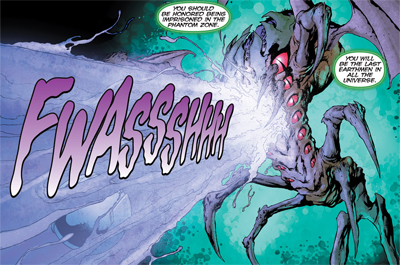 52 reimagines the delightfully silly Golden Age evil caterpillar, “Mister Mind”, as a grim nihilistic universe-eating monster in the finest tradition of nineties excess. In a sequence which seems to heavily foreshadow Grant Morrison’s Final Crisis, the grotesque fiend plans to devour the shared universes, eating away at the company’s legacies and traditions and literally destroying creativity. A very Morrisonian villain, he isn’t just a threat to the fictional characters inside the comic, but to the narrative itself.