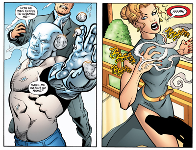 So it’s interesting that 52 addresses the notion of a DC superhero overclass, but firmly comes down in defence of the establishment. Lex Luthor’s team of new heroes come into conflict with the original members of Infinity Inc. The original team was composed of the “sons and daughters of the original members of the Justice Society.” These people who inherited their powers and their positions are knowns as “blood brats”, hinting at the idea that the superhero community as become fairly class-based.