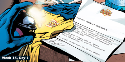 After one superhero fight, Mercy Graves is frustrated by the quality of the banter. “I know,” Luthor agrees. “And we had four writers. We’ll re-record the fight banter in post.” It seems a sly nod at the fact that 52 was being written by four members of DC’s very top creative talent.