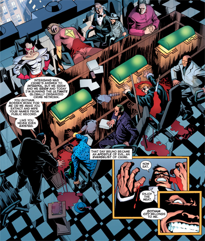 The splash page opening the issue seems to be a visual shout-out to Darwyn Cooke’s superb New Frontier, which is a comic book out of continuity. It’s a nice way for Morrison to open his Batman run by suggesting that even the out-of-continuity Batman stories are part of the fabric that makes Batman what he is. (It’s also just a great image.) This single issue is pretty much essential reading for anybody wanting to make sense of Morrison’s Batman, almost serving a mission statement.
