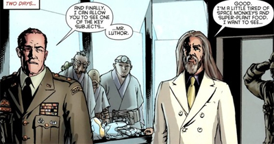 Sam Lane is pretty clear about the politics of the situation when briefing Sinclair. “But you get it. People with no allegiance building metahumans without patriotism. For the next war, we’ll need soldiers and heroes, not guinea pigs.” Later on, he informs his first subject, “I’m creating the hero America needs. And that means someone we’re sure of.” It’s clear that – to Sam Lane – the fight for “the American Way” is not just a nice rhetorical flourish, but a firm political mandate.