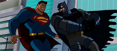 Battle of the Superheroes focuses on Batman and Superman as friends and colleagues, a portrayal which seems somewhat dated. After all, ever since Frank Miller wrote The Dark Knight Returns, the tendency has been to treat the pair as grudging allies rather than bosom buddies. Still, the Silver Age aesthetic of The Brave and the Bold suits this approach well, and it’s hard not to get swept up in the wry enthusiasm of it all.