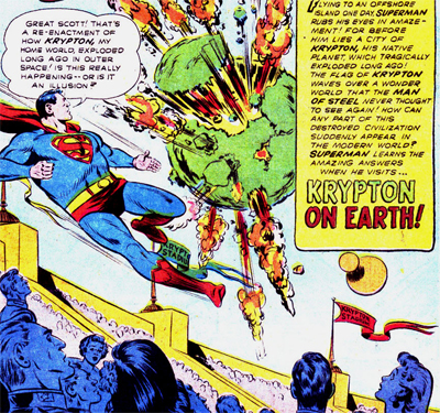 When Superman disappears underwater in The Super Merman of the Sea, a passing ship’s captain speculates, “Hmm… perhaps Kryptonite dust tainted Earth’s atmosphere, forcing Superman to remain underwater!” Jimmy Olsen is shocked when it turns out there isn’t Kryptonite in the atmosphere. “But that’s the only thing that could keep Superman exiled undersea!” Even Superman himself complains about the device in Superman’s Hunt for Clark Kent, moaning, “Criminals are always after me with Kryptonite, the element whose radiations are deadly to me!”