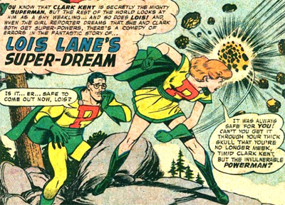 Although not the first female analogue for Superman (Lois Lane was “Superwoman” as early as 1943), this collection also includes the début of Supergirl. (In Lois Lane’s Super-Dream, Lois also gets to play as “Power Girl.”) Supergirl would prove so popular that the character would be properly introduced the following year. It’s interesting that Supergirl is wished into being by Jimmy Olsen. In The Girl of Steel, Olsen wishes, “I wish that a super-girl with super-powers equal to Superman’s would appear and become his companion.”
