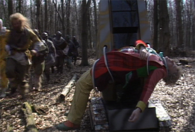 While the Doctor’s rapport with Peri has improved, sadly the show’s attitude towards her hasn’t quite been redeemed. It’s nice to see Nicola Bryant costumed in such a way that isn’t so crassly intended to transform her into a sex object, but there’s still the fact that almost everybody on the show still thinks of her as one. When she is captured by the surface dwellers, the leader immediately sees value in her reproductive organs. “I shall provide some excellent husbands for you,” Katryca boasts. “Such women as we have must be shared. Think about it.” Well, at least there’s a choice, even if the choice is death.