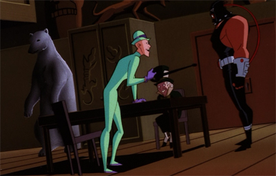 It seems like a somewhat sarcastic and biting portrayal of a character who was admittedly introduced as a gimmick in nineties comics. However, it’s strange that the production team on the DC animated universe never really tried to develop or harness Bane as they did with so many other second-tier DC comics villains (as they did with Freeze in Heart of Ice) – especially given the potential of the character as revealed in Christopher Nolan’s The Dark Knight Rises or Gail Simone’s Secret Six. Here, he’s just dumb muscle easily defeated by Superman.