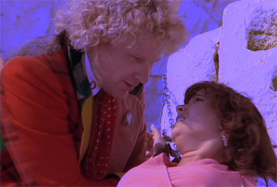 Indeed, we even see some stuff that isn’t out of character, but still points to the flaws in this iteration of the character. For example, he conceals Sil’s involvement from Peri in order to trick her into going along with him. When Peri points out what Sil put her through, the Doctor is dismissive and flippant. “How could I forget?” he asks. “It cost me a fortune in bird seed.” Peri pleads, earnestly, “I want out, and I mean it.” The Doctor just ignores her, “Come on, mustn’t lose track of your friend Sil.” In many ways, this exchange is more typical of the relationship between the pair than any of the genuinely sweet stuff during The Mysterious Planet.