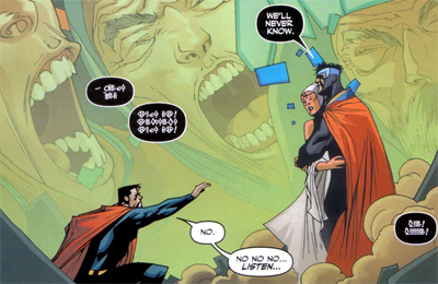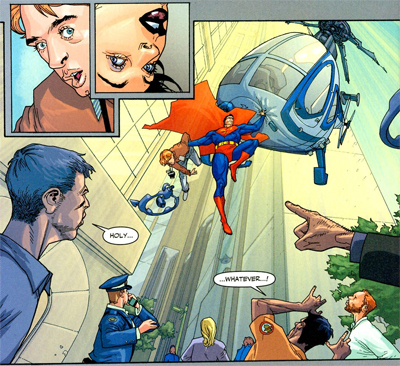 It can’t help but feel like Waid is reworking this twenty-first century Superman as a response to the nineties specifically, which is a little jarring when we consider how dramatically American politics shifted after 9/11. The only real attempt to tackle some of that post-9/11 fear comes when Luthor threatens to detonate a number of suicide bombers around the city, but it doesn’t really feel as potent as it might. For one thing, these bombers are failed invaders; for another, they lack the horrifying fanaticism associated with those sorts of terrorists.
