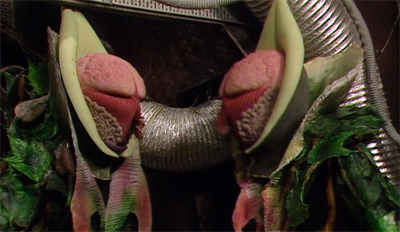Of course, the Vervoids themselves are a fairly crap alien race. Their design is fairly easy to mock, something of a Freudian nightmare. They even spray white dust from their heads! However, that’s not the only problem with the monsters. As with so many monsters at this period in the show’s history, the effect is somewhat undermined by the use of bright lighting. Although they are apparently plants, to the point where the suits have flowers at the end of their arms, the actors still move their hands like regular people.