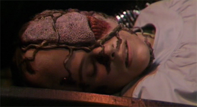 There’s a sense that Terror of the Vervoids is attempting to do a mystery story set in outer space. After all, Lasky is seen reading Murder on the Orient Express, and there is an investigation plot running parallel to the threat posed by these creatures. The problem is that – quite clearly – Pip and Jane Baker have absolutely no idea how to write a mystery. Quite simply, the story does not work as what it sets out to be, a more fundamental problem than the clumsy use of cobbled-together imagery pilfered from better writers.