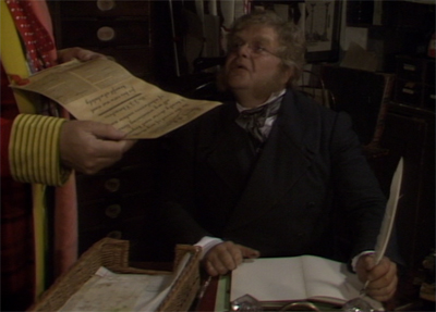 Unfortunately, the Bakers don’t really see that obvious problem. Instead, they play the Valeyard as “villainous Doctor” completely straight, which becomes completely ridiculous when they bring the Master into the plot in more active manner. “You really are a second-rate adversary,” the Valeyard declares, chasing the Master out of the area in a sequence that looks like a live-action Daffy Duck cartoon. If this is what the Valeyard was always intended to be, it seems somewhat shallow. It feels like a waste of fourteen episodes of build-up.