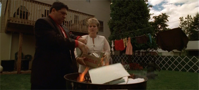 This purge extends all the way through the crime family, and pretty much confirms the passive complicity of Soprano nuclear family. “Boot your computer,” Meadow warns AJ. “The cops are coming.” Although Carmela has had a crisis of conscience over the way that Tony pays for her lifestyle, she’s a completely willing accomplice to the destroying of evidence. “What about your phone numbers?” she prompts Tony. “Here we go,” she sighs with some resignation, as if used to this by now.