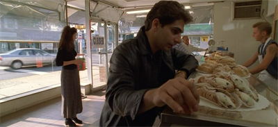 Even the mob, an organisation that kills and brutalises with impunity, is treated as nothing but a gaudy sideshow through which Christopher might earn his fame. The commentator on the news is identified as “Author of Mafia: America’s Longest-Running Soap Opera”, a book title which says a lot about how reality and entertainment are consolidated. When Christopher summarises the plot of Devil’s Advocate, he rather tellingly talks as if Keanu Reeves himself were the main character, not simply a performer in a role. (“Keanu’s a lawyer,” he explains, also probably pointing out where the film went wrong.)