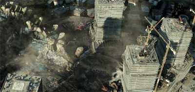 That said, it’s the sight of shanty towns built over the carcases of fallen monsters (“bone town”) and the short glimpses around the world (including covers of Wired influenced by the movie’s sci-fi tech) which make Pacific Rim seem a bit more anchored than most special-effects driven spectacles. The production design on Pacific Rim is absolutely stunning, from the CGI models to the set design to the use of colour. It’s just beautifully put together.