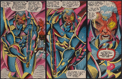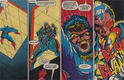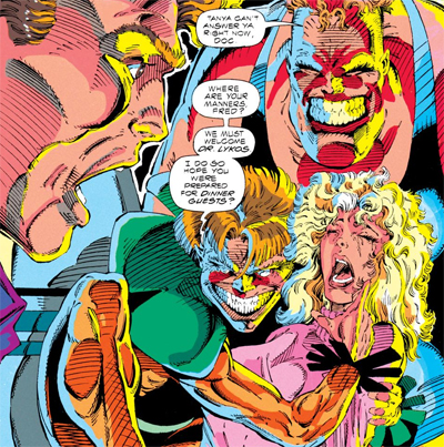 The times they are a-changing, and X-Force seems to imply that this is what “grown-up” X-Men comics looks like. Cable boasts, “We now have the kind of fighting unit I’ve felt we needed all along.” He none-too-subtly tells Cannonball that it’s time to let go of all that pacifist stuff that Xavier was peddling. “You were first brought here by a man who had a dream, Sam. The dream is dead. It’s time to face reality.” Welcome to the nineties, where reality is a cocktail of guns and pouches.