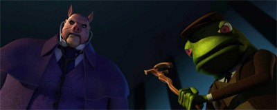 (That said, I will confess to being a little weirded out by the fact that Mr. Toad is apparently a giant talking Toad, but nobody else finds this weird – especially this early in Batman’s career. His appearance at the start of Batman & Robin was probably intended to clue the audience into how weird things would be getting, and as a throwback to weirder and wackier adventures. Here it seems strnage that nobody treats Mr. Toad as any weirder than the British dude in the pig mask. Which, you’d imagine, would be slightly less weird in a city with a Batman.)