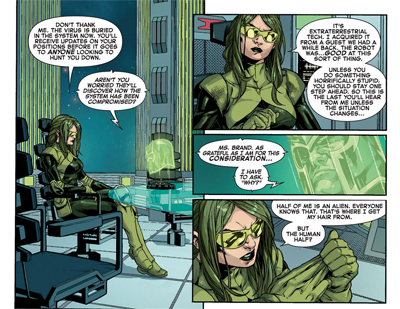 (The writer moved on to Iron Man following the Marvel NOW relaunch, and Tony gets a few nice little scenes here which might hint at what Gillen has in store for the character… or might not. I know that Gillen’s work on Iron Man has been somewhat controversial among purists, which is generally a good sign in mainstream comic books, indicating it will at least be bold and experimental. It doesn’t really say that much about quality, but I’ve learned to give Gillen the benefit of the doubt.)