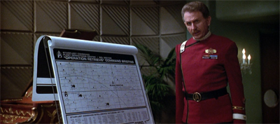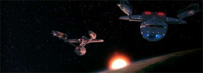 However, there’s one confounding bit that’s long been interpreted by audiences and critics as a glaring error in the script, but in fact was a goof created during production. It’s established in the first scene that the Excelsior, under the command of Sulu, has spent the last three years cataloguing gaseous planetary anomalies in the Beta Quadrant. Much later, the Enterprise is trying to pinpoint the location of an attacking Klingon bird-of-prey rendered invisible by its cloaking device. Spock notes that, cloaked or not, the Klingon ship is expending fuel in the form of ionized gas. In response, Uhura says, “What about all that equipment we’re carrying to catalogue gaseous anomalies? The thing’s got to have a tail pipe!”