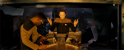 Watching Generations divorced from the television show, we get no real sense of who the rest of the ensemble are beyond their relationships with Picard and Data. Riker is Picard’s right-hand man. Geordi is captured and tortured as a lesson to Data about the value of courage. Crusher gets angry at Data to motivate him to install his emotion chip. Troi serves as as a springboard for Picard’s exposition and then crashes the ship to remind the audience that she exists. Worf is promoted at the start of the film, but he’s also bullied by his co-workers.