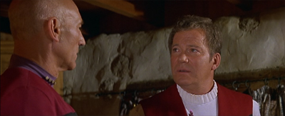 While the horse riding sequences were clearly only included as part of a cynical ploy to get Shatner to sign on to the film, there’s something surprisingly effective about Kirk and Picard both riding horses together, harking back to the classic description of Star Trek as “Wagon Train to the Stars.” Although the sight of Kirk and Picard cooking together isn’t quite what most fans would have wanted, there’s something quite charming about the way that Kirk’s ego leads him to immediately start offering life advice to his fellow captain.