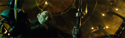 To be fair, Nero’s an intentionally shallow creation. His name seems to evoke Jules Verne’s “Captain Nemo”, another angry outsider who led his ship and crew against what he perceived to be an imperialist force. Here, Nero simply serves as a convenient adversary, and one who won’t compete with the main characters for development. Nero is not well characterised, although Bana is fairly game in the role. I like his design, and the use of tattoos (and bald heads) to distinguish Romulans from Vulcans. It is an impressive visual, as is the Nerada itself.