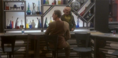 A Man Alone really cements the idea of Deep Space Nine as a western, and it’s appropriate that it focuses on Odo to do so. Odo is, after all, a small-town sheriff trying to keep order in a very chaotic environment. The station even has its own tavern. Quark’s has a much great claim to the title of “tavern” than Ten Forward ever did. It even seems much louder, much more cluttered than the bar on the Enterprise ever did. Its proprietor, Quark, even expressly observes, “Everybody wants a piece of the new frontier.”