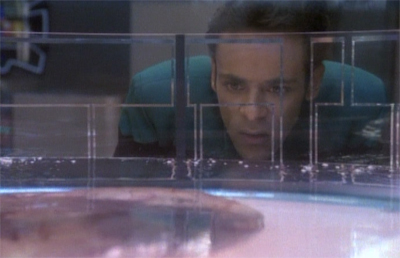 The episode suffers because it’s a mystery without a solution that the audience can work out. The ending is a piece of techno-babble cop-out that isn’t really effectively foreshadowed. It just sort of is, through the wonders of science-fiction. I know the mystery isn’t the main point, but the show goes to such pains to set up the locked-room aspect of the story, and makes such a big deal of the flakes that it would be better if there were foreshadowing or hinting, rather than a convenient twist that ties everything up neatly.