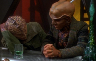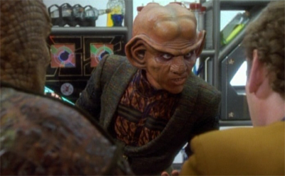 The problem arises when the show pushes Quark too far out. I remarked in Babel that it’s hard to justify keeping Quark around when he does crazy things that cause massive amounts of danger to the station. It’s also very hard to treat Quark as plucky comic relief and “a decent guy by his own standards” when it is revealed that he has been taking advantage of his female staff members. After all, this is unlikely to be the only Dabo Girl with that clause in her contract, and it’s unlikely that this was the first time Quark has done this sort of thing.