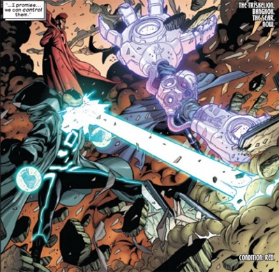 “An idea is nothing until it is transformed into action,” we’re told at one point – in stark contrast to the philosophy espoused by Reed Richards in Hickman’s Ultimates, with Reed suggesting that even speaking an idea out loud brings it closer to existing. Of Xorn and Zorn, we are told that the pair are not simply mutants with opposite powers. They are more than merely political players in this global game of chess. “Two brothers became the embodiment of something beyond the acquisition of power in the great game of global politics. They became avatars of something more.”