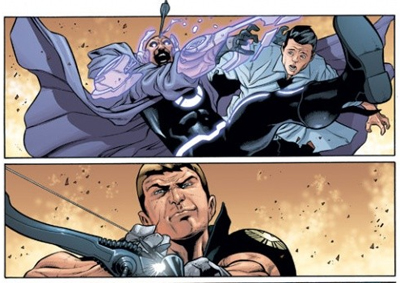 Still, all this feels relatively shallow, and Hickman’s Hawkeye feels very much like a supporting character in his one miniseries, to the point where Hickman even creates a team around Hawkeye in the second half of the miniseries, as if to confirm that the writer is much more comfortable writing a team dynamic than focusing on a single character. Either way, it’s clear that Hickman’s much more interested in the events happening around Hawkeye, setting up ideas that will pay off during his Ultimates run.