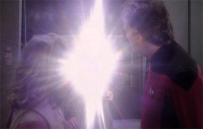 Some of Q’s possessive antics can be dismissed with a curt shake of the head. Warning Bashir away from Dax while posing as a Bajoran waiter, and then sending him into a coma seems playful – if only because Q wakes him up after he leaves. Had Q wiped Bashir out of existence, it would be a different story. However, there’s one truly creepy scene where Q attempts to remind Vash that “the galaxy can be a dangerous place when you’re on your own.” And he reduces her to a quivering wreck, to underscore his power over her. And that’s to say nothing of abandoning her in the Gamma Quadrant with no way home in the first place. If not for the wormhole and the runabout, Vash would likely have died anonymous, lost a long way from home.