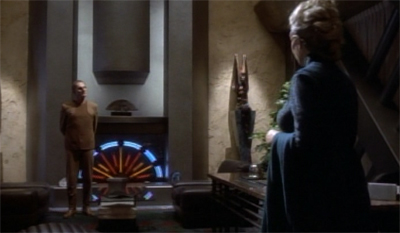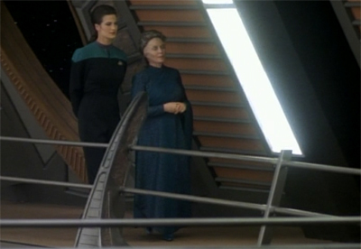More subtly, Dax actually works quite well as a story about change, on quite a few levels. It’s about the old and the new, appropriately enough considering it’s the story of an old soul in a young body. This is the last Star Trek screenwriting credit for the wonderful D.C. Fontana, who worked as script editor on the original Star Trek. She wrote for The Next Generation and Deep Space Nine, and has been notable for her staunch support of the latter. The episode enters with a log explaining that Chief O’Brien has returned to Earth for his mother’s one-hundredth birthday. Renora, the administrator overseeing the extradition hearing, admits to being over 100 years old.