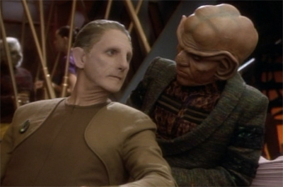 There’s also some nice stuff in there about attempted extraordinary rendition, underscoring just how murky the politics of Deep Space Nine actually are. (Although the characters refer to it as “unilateral extradition.”) The opening kidnapping sequence seems to exist merely to up the dramatic stakes and provide some action at the start of a court room drama, but it’s nice that the writers seem to have actually thought through the political logic about such an action. Even the show’s court room episode involves the politics of Bajor and Cardassia.