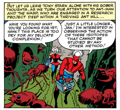When forced to shrink to avoid an enemy attack, Janet remarks, “I don’t have much to say about it, partner, when you can control my size by just thinking me smaller!” It seems that Janet isn’t even allowed to control her own superpower under Hank’s watch. He’s shown as clingy and needy, at one point throwing a minor temper tantrum when she decides to leave. “Oh, stop being so dramatic, Henry Pym!” she protests. “And for heaven’s sake, remain one size, will you?” Janet isn’t portrayed in a much more flattering light, constantly adjusting her make-up and contributing relatively little to the team dynamic.