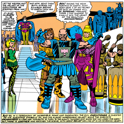 Loki is, after all, responsible for the formation of the team, creating a crisis so large that more than one hero was needed to help cope with it. The recurring villainous team of the Masters of Evil is anchored by Baron Zemo, the Enchantress and the Executioner. Despite his ties to Captain America’s past, Baron Zemo is an original character, making the Enchantress and the Executioner the two most important recurring characters.