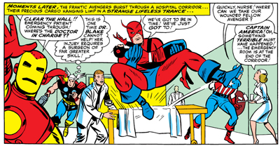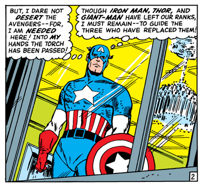 (To be fair, Lee himself seems to wrestle with the meaning of the name, with a few scattered lines suggesting he might be trying to justify it. “You were expecting me, Loki!” Thor accuses his brother at one point in the first issue. “That means you have committed some foul deed, knowing I would come to avenge it! And avenge it I shall!” As Captain America explains that Rick Jones has helped him to keep going, he adds, “But something else has, too! A hunger for revenge!” Zemo fears, “If my victims knew who I was, nothing could have saved me from their vengeance!” While Captain America’s fixation on Zemo is far from healthy, the narrative never really delves into it.)