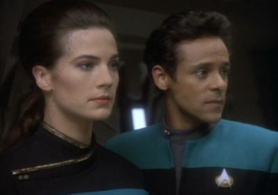 “There doesn’t seem to be any immediate threat,” Dax observes. Kira is still not entirely cool with all this. “Oh, no. I’m sure all you Starfleet explorers find this fascinating, but I’m a Bajoran administrator. This is not what I signed up for.” It’s nice to have a regular cast who don’t all feel tied to a generic set of cultural norms. Even early in the run, the show was taking a lot of care to define Starfleet’s position as only one of a few moral outlooks. Not all are equally valid, but they were generally legitimate.