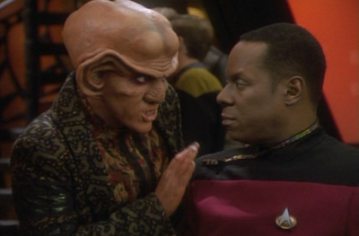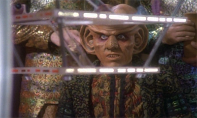 However, all of these nice little things are tangential to Move Along Home, scattered in the background. The only really half-decent thing about Move Along Home is the way it give the focus to Quark as a character, and that’s arguably more down to Shimerman than the script: