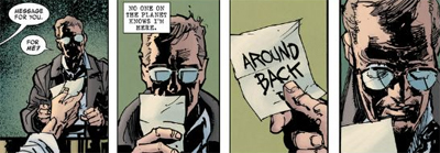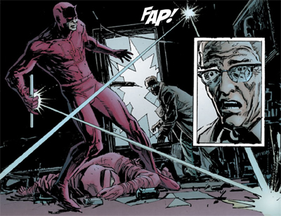 The return of Daredevil prompts an old rival to suddenly become active again. As the news reports acknowledge following the Punisher’s sudden escape from maximum security, “The real question is… what inspired Castle to escape after so many years?” Okay, Frank Castle never utters the world “darling”, but his manipulation of the media to assist in an escape prompted by the sudden reappearance of Daredevil feels like a nice shout-out to The Dark Knight Returns.