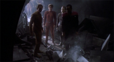 It didn’t always work out. There are times in this first year when the show stumbles and falls. It even tries a couple of times to emulate its more successful older sibling, losing its distinctive voice in the process. Trying to out-Next-Generation The Next Generation was a foolish move, particularly since people could just tune into a show doing the same sorts of plots much better. There are times in the season where you can almost imagine that argument playing out in the writers’ room or among the producers. The hesitation, the nervousness, the insecurity.