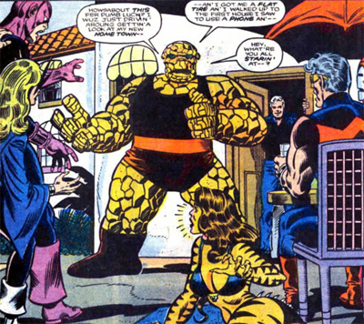 Of course, it’s hard to take his assertion at face value. When another competent no-name heroine (named Firebird) comes along and wants to join the team, Hawkeye overlooks her entirely. Apparently you need either brand recognition or to sleep with Hawkeye if you want on to his super team. To be fair, Hawkeye argues there are other reasons Firebird didn’t make the cut. Explaining why he picked the Thing – who repeatedly refused to join – over Firebird, Hawkeye offers, “And he’s the Thing! We know what he can do, and we don’t know her!”