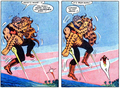 As if to underscore just how deeply “wrong” Tigra’s sexual hyper-drive is, Englehart has Tony Stark (hardly the paradigm of good judgement in the Marvel Universe) refuse to go to bed with her. In another quick scene, as Tigra makes out with one of her lovers, Englehart and Milgrom frame the shot to include another of her partners walking oblivious by the window. The narrative condemns Tigra’s approach to sex, suggesting that she is causing unfair harm to the men wrapped up in her sexual antics. There’s never any suggestion that Pym or Wonder Man might have unrealistic expectations from their liaisons.