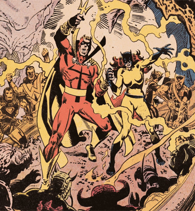 In contrast, these rough edges get smoothed out when Steve Englehart takes over. The comic immediately seems to lose interest in its West Coast setting – barring the occasional gag about Simon Williams’ career. The commentary descends into cheap name-dripping and references. Williams gets to work with Arnold Schwarzburger on a knock-off of Conan: The Barbarian, produced by “Dino” who is reduced to the most crass of ethnic stereotypes. “Fo’get-a da cheaters!” Dino appeals to Tigra. “I make-a you a star!”