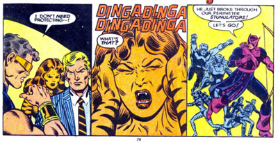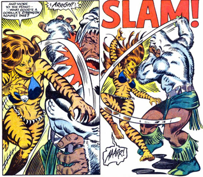 Similarly, Englehart’s use of Tigra seems… awkward. Tigra is a character who comes with a certain amount of baggage, being an anthropomorphised tiger who jumps around in a bikini. She’s a character who comes with her own issues and baggage, making her tough work for even seasoned comic book writers. Englehart, for some reason I can’t begin to fathom, decides to drop a boatload of gender issues on top of Tigra’s character arc, and the results are not pretty.